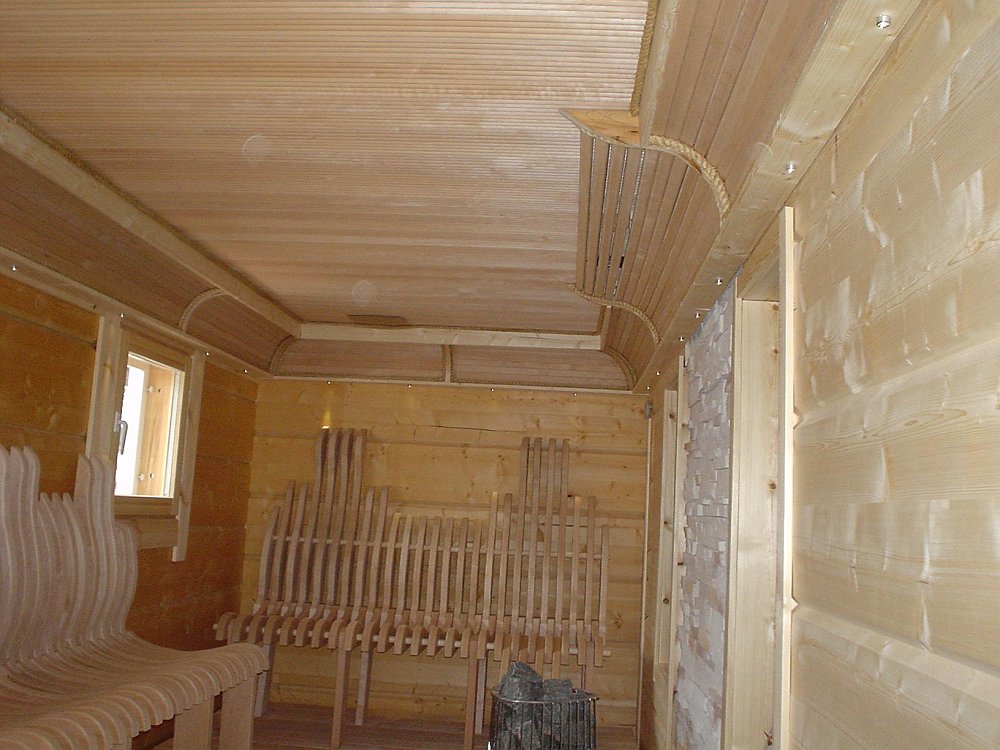 Uuden lomarakennuksen sauna.