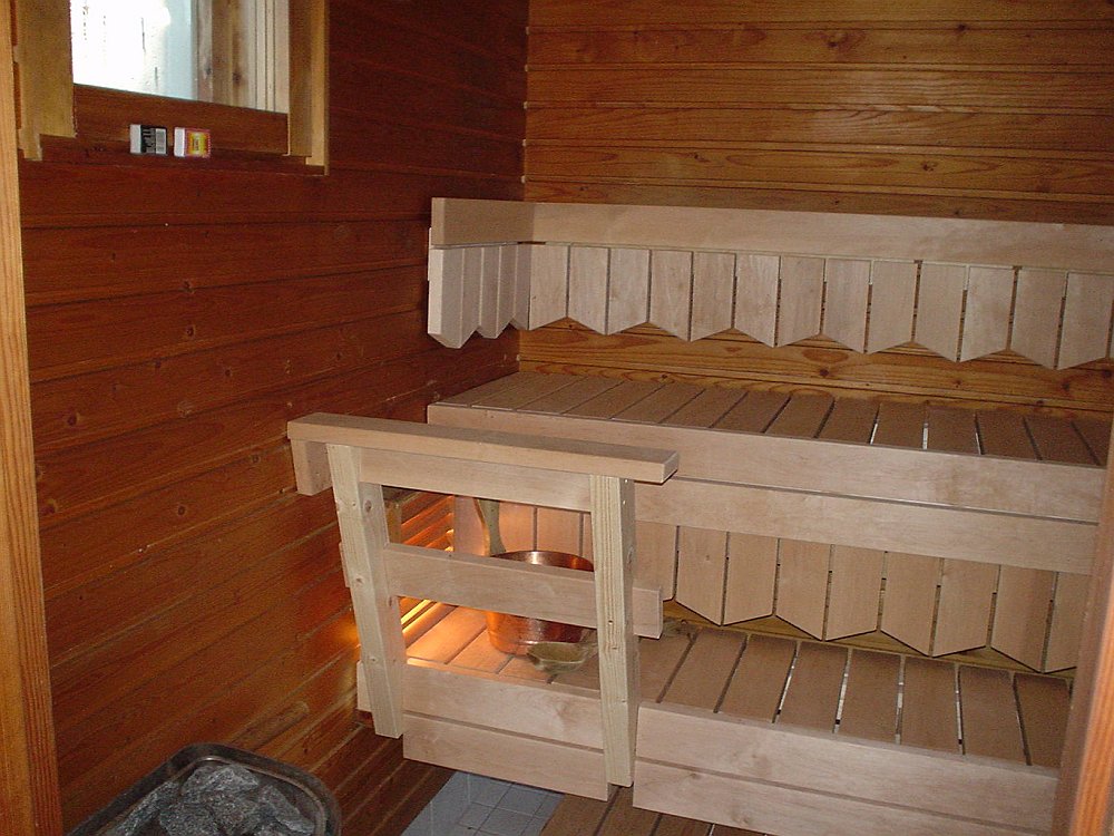 Vanhaan saunaan hieman siistityt leppälauteet.
